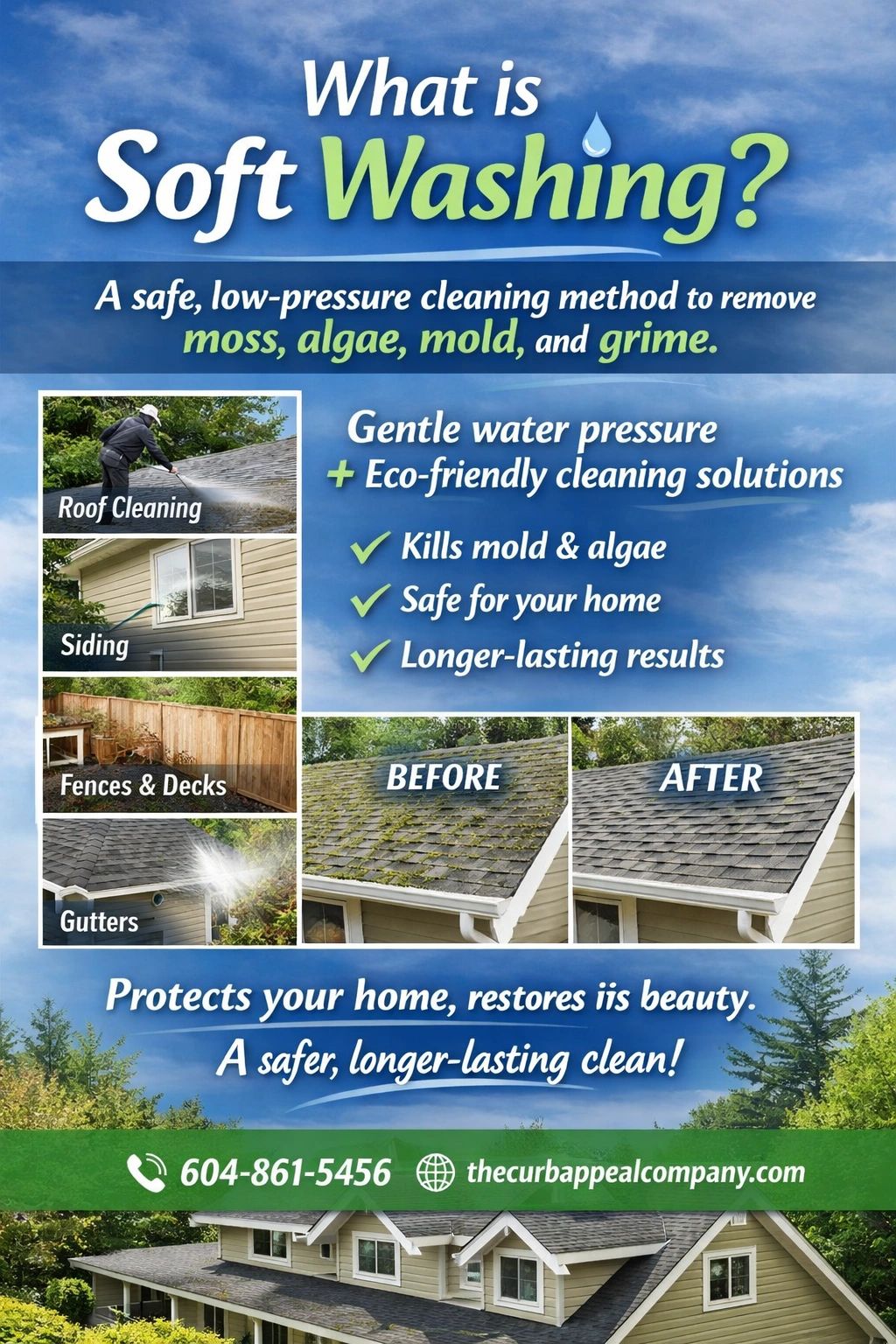 The Curb Appeqal Company, we provide complete home and property care in Vancouver, including roof cleaning, house washing, siding cleaning, and moss and algae removal, along with pressure washing services for driveways and walkways. We also offer lawn repair and gutter cleaning, helping keep residential and commercial properties clean, maintained, and looking their best year-round.